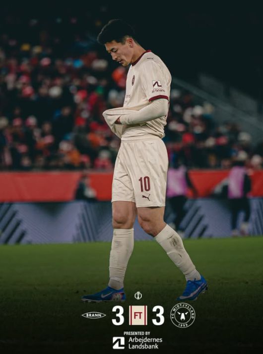 미트윌란은 23일(한국시간) 노르웨이 베르겐 브란 스타디온에서 열린 2025~26시즌 유럽축구연맹(UEFA) 유로파리그(UEL) 리그 페이즈 7차전에서 SK 브란과 3-3으로 비겼다.