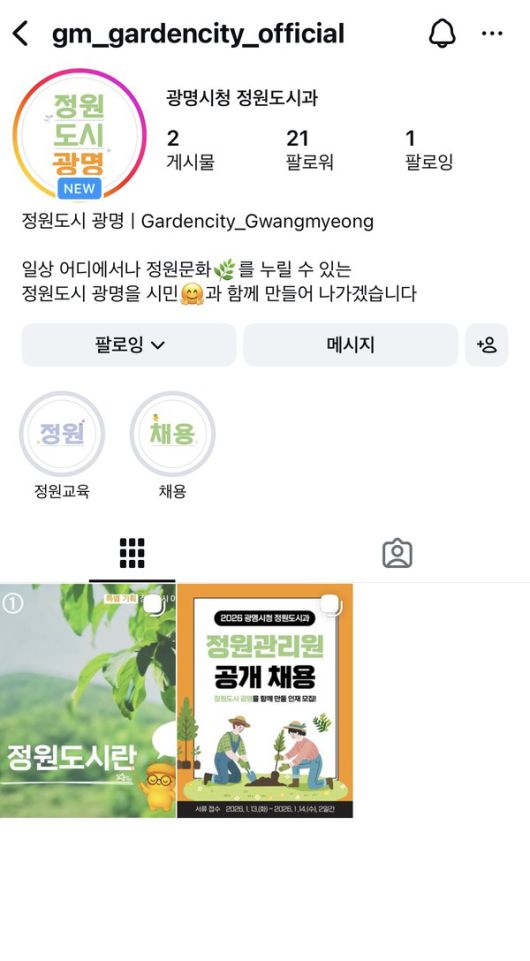 정원도시 광명의 이야기를 시민과 함께 나누기 위해 공식 인스타그램 채널을 23일부터 운영한다.