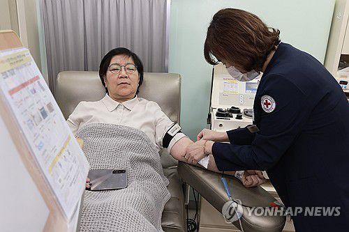 (서울=연합뉴스) 정은경 보건복지부 장관이 23일 인천혈액원 헌혈의집 구월센터를 방문해 헌혈에 참여하고 있다. 2026.1.23 [보건복지부 제공. 재판매 및 DB 금지]