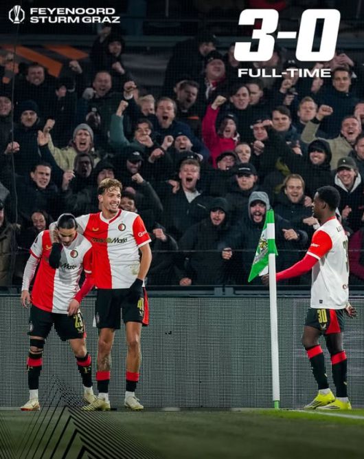페예노르트는 23일(한국시간) 네덜란드 로테르담의 스타디온 페예노르트에서 열린 2025-26시즌 유럽축구연맹(UEFA) 유로파리그(UEL) 리그 페이즈 7차전 홈 경기에서 슈투름 그라츠를 3-0으로 꺾었다.