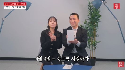 두 사람은 영상 촬영일(21일) 기준, 어제 나왔다는 청첩장을 공개했다. 영철은 결혼식 날이 4월 4일이라는 말에 "저는 비도 눈으로 바꾸는 남자다. 대부분 이날을 싫어하시지만 '죽도록 사랑하자'는 의미를 생각했다"고 밝혔다.
