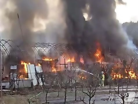 (시흥=뉴스1) 김기현 기자 = 23일 오후 4시 52분께 경기 시흥시 계수동 한 비닐하우스에서 화재가 발생했다.