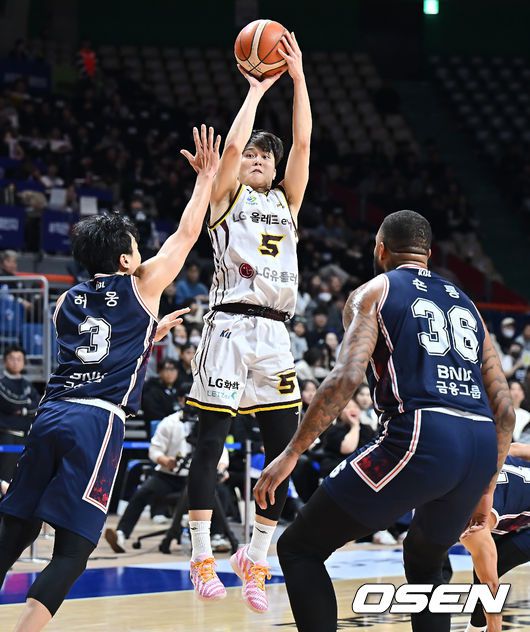 [OSEN=부산, 이석우 기자] 23일 부산 사직체육관에서 2025-2026 LG전자 프로농구 부산 KCC와 창원 LG의 경기가 열렸다. 허웅·송교창이 복귀한 KCC가 타마요·양홍석 이탈로 전력 공백이 생긴 LG를 상대로 길었던 LG전 10연패 탈출을 노린다. 창원 LG 양준석이 부산 KCC 허웅의 마크를 피해 골밑슛을 시도하고 있다. 2026.01.23 / foto0307@osen.co.kr
