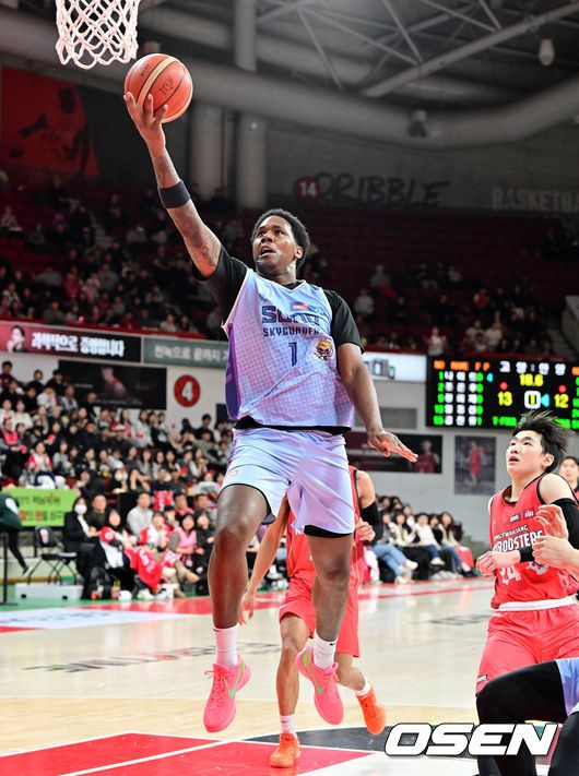 [OSEN=안양, 지형준 기자] 23일 오후 안양 정관장 아레나에서 2025-2026 LG전자 프로농구 안양 정관장과 고양 소노의 경기가 열렸다. 정관장은 2위(22승 11패), 소노는 7위(12승20패)를 기록중이다. 1쿼터 소노 네이던 나이트가 레이업을 성공시키고 있다. 2026.01.23 /jpnews@osen.co.kr