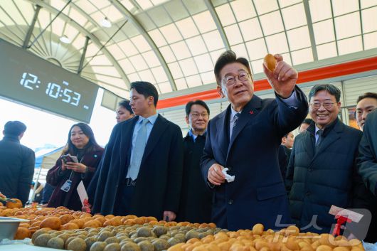 (서울=뉴스1) 이재명 기자 = 이재명 대통령이 23일 울산 울주군 남창옹기종기시장을 찾아 상품을 들어보이고 있다. (청와대 제공. 재판매 및 DB 금지) 2026.1.23/뉴스12expulsion@news1.krCopyright ⓒ 뉴스1. All rights reserved. 무단 전재 및 재배포, AI학습 이용 금지.