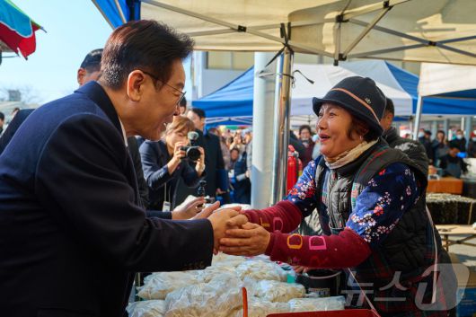 (서울=뉴스1) 이재명 기자 = 이재명 대통령이 23일 울산 울주군 남창옹기종기시장을 찾아 상인과 인사를 나누고 있다. (청와대 제공. 재판매 및 DB 금지) 2026.1.23/뉴스12expulsion@news1.krCopyright ⓒ 뉴스1. All rights reserved. 무단 전재 및 재배포, AI학습 이용 금지.