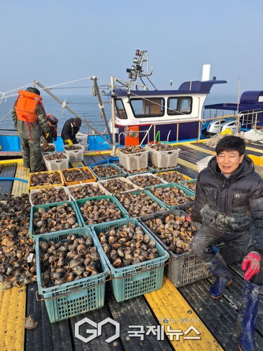 (홍성=국제뉴스) 박의규 기자 = 겨울철 대표 수산물로 불리는 새조개로 전국적인 유명세를 타고 있는 홍성 남당항에 겨울에 최고의 맛을 품은 참소라가 대풍을 이루며 어민들이 함박웃음을 짓고 있다.