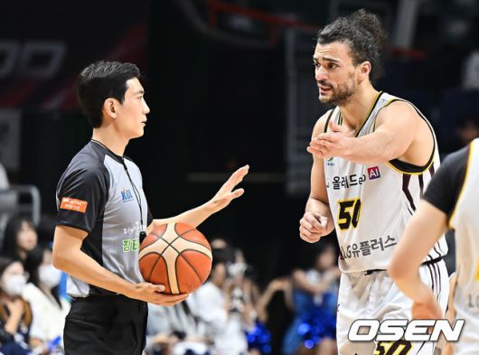 [OSEN=부산, 이석우 기자] 23일 부산 사직체육관에서 2025-2026 LG전자 프로농구 부산 KCC와 창원 LG의 경기가 열렸다. 허웅·송교창이 복귀한 KCC가 타마요·양홍석 이탈로 전력 공백이 생긴 LG를 상대로 길었던 LG전 10연패 탈출을 노린다. 창원 LG 아셈 마레이가 심판에게 파울에 대해 어필하고 있다. 2026.01.23 / foto0307@osen.co.kr