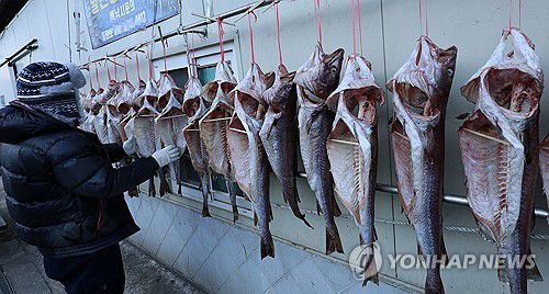 차가운 바닷바람에 말리는 대구 |