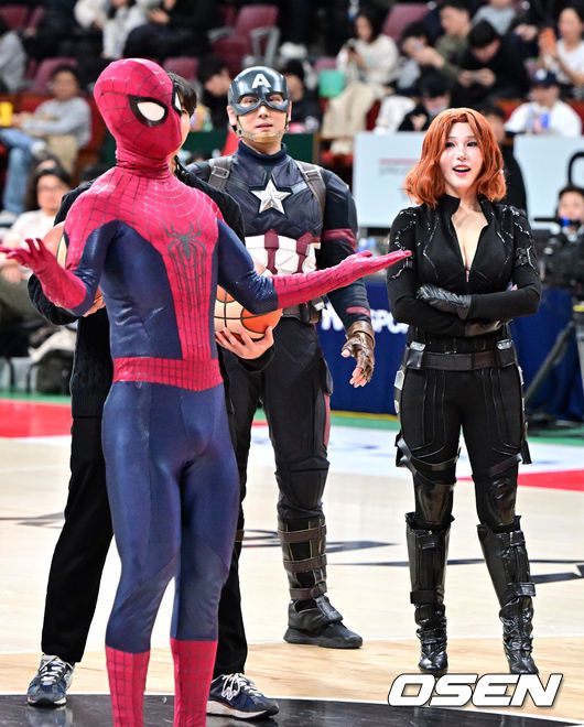 [OSEN=안양, 지형준 기자] 23일 오후 안양 정관장 아레나에서 2025-2026 LG전자 프로농구 안양 정관장과 고양 소노의 경기가 열렸다. 정관장은 2위(22승 11패), 소노는 7위(12승20패)를 기록중이다. 하프타임 마블 어벤저스가 팬들과 자유투 대결을 하고 있다. 2026.01.23 /jpnews@osen.co.kr