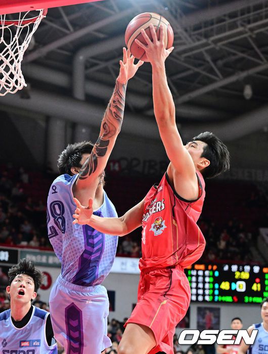 [OSEN=안양, 지형준 기자] 23일 오후 안양 정관장 아레나에서 2025-2026 LG전자 프로농구 안양 정관장과 고양 소노의 경기가 열렸다. 정관장은 2위(22승 11패), 소노는 7위(12승20패)를 기록중이다. 3쿼터 정관장 박지훈이 레이업을 성공시키고 있다. 2026.01.23 /jpnews@osen.co.kr
