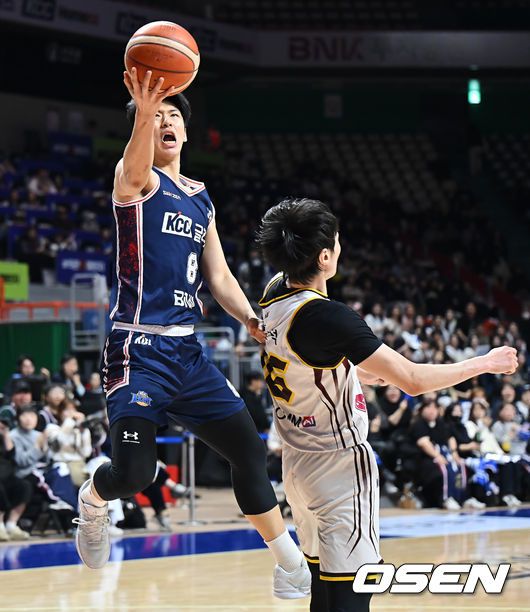 [OSEN=부산, 이석우 기자] 23일 부산 사직체육관에서 2025-2026 LG전자 프로농구 부산 KCC와 창원 LG의 경기가 열렸다. 허웅·송교창이 복귀한 KCC가 타마요·양홍석 이탈로 전력 공백이 생긴 LG를 상대로 길었던 LG전 10연패 탈출을 노린다. 부산 KCC 윤기찬이 창원 LG 정인덕의 마크를 피해 골밑슛을 시도하고 있다. 2026.01.23 / foto0307@osen.co.kr