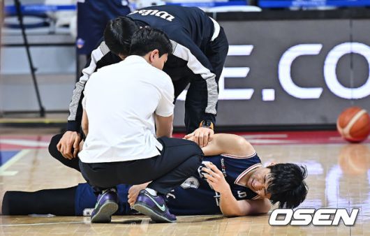 [OSEN=부산, 이석우 기자] 23일 부산 사직체육관에서 2025-2026 LG전자 프로농구 부산 KCC와 창원 LG의 경기가 열렸다. 허웅·송교창이 복귀한 KCC가 타마요·양홍석 이탈로 전력 공백이 생긴 LG를 상대로 길었던 LG전 10연패 탈출을 노린다. 부산 KCC 윤기찬이 통증을 호소하고 있다. 2026.01.23 / foto0307@osen.co.kr
