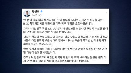 정성호 법무부 장관은 쿠팡의 일부 미국 투자사들이 한국 정부를 상대로 낸 국제투자분쟁, ISDS 중재의향서는 근거 없는 주장이라고 일축했습니다.