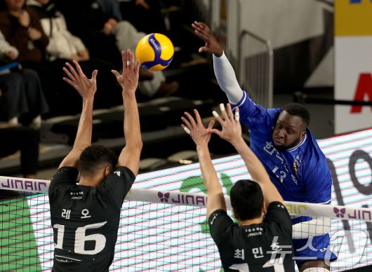 (서울=뉴스1) = 23일 수원실내체육관에서 열린 진에어 2025-26 프로배구 V-리그 한국전력과 현대캐피탈의 경기에서 한국전력 베논이 공격하고 있다. (한국전력 배구단 제공. 재판매 및 DB 금지) 2026.1.23/뉴스1kkorazi@news1.krCopyright ⓒ 뉴스1. All rights reserved. 무단 전재 및 재배포, AI학습 이용 금지.