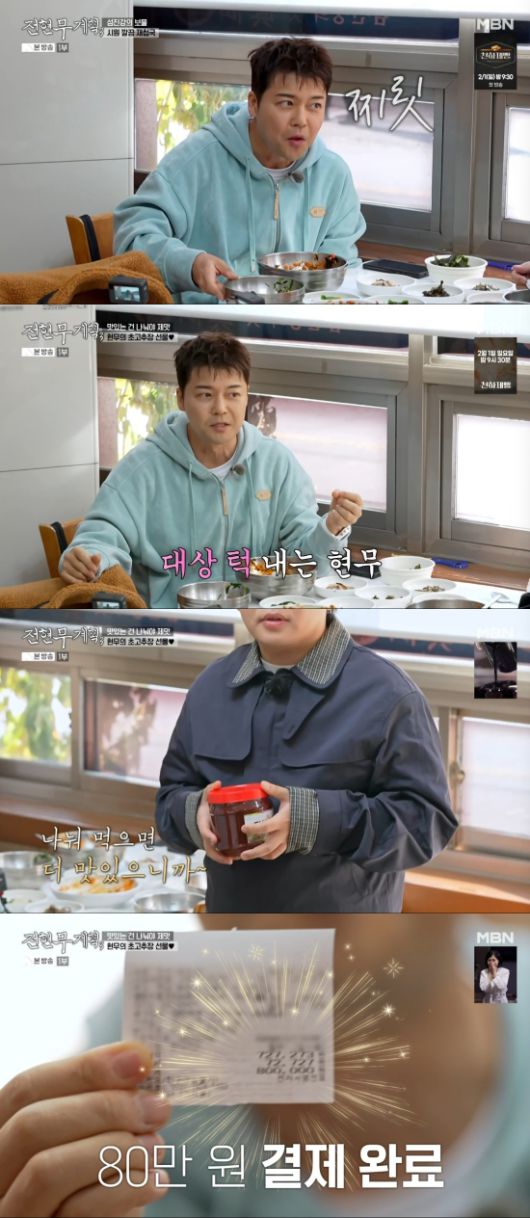 스태프 40명의 고추장을 모두 결제한 전현무는 당당히 80만 원을 결제한 영수증을 인증해 눈길을 끌었다.