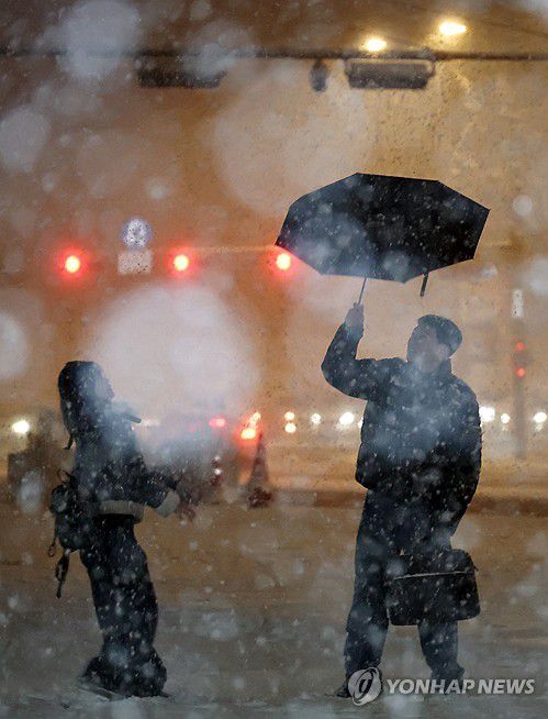 (서울=연합뉴스) 김인철 기자 = 영하권의 날씨가 계속되는 23일 저녁 서울 종로구 광화문광장 일대에 많은 양의 눈이 내리고 있다. 2026.1.23