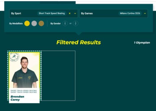 쇼트트랙 종목에서 호주 대표는 남자 500m, 1000m 두 종목에 나서는 브랜든 코리 한 명 뿐이다.