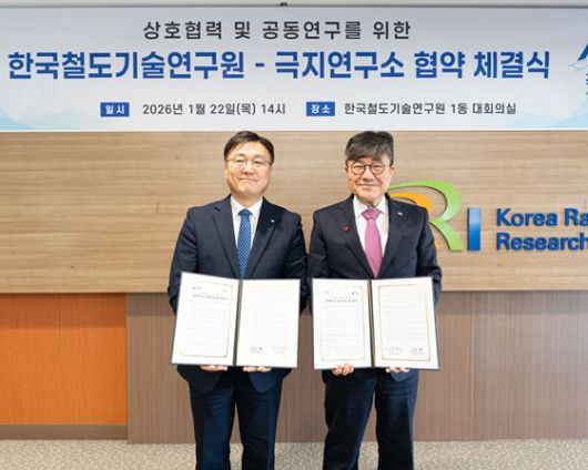 협약은 여름철에도 기온이 영하 수십 도까지 떨어지는 남극 내륙의 극한 환경에서 연구 활동을 뒷받침할 운송과 물류 기술 공동 개발 등을 목적으로 마련됐다. 체결식에는 신형철 극지연구소장과 사공명 한국철도기술연구원장을 비롯해 양 기관의 주요 관계자들이 참석했다.