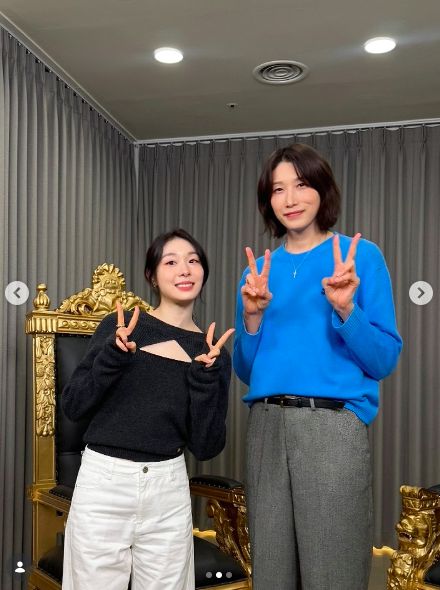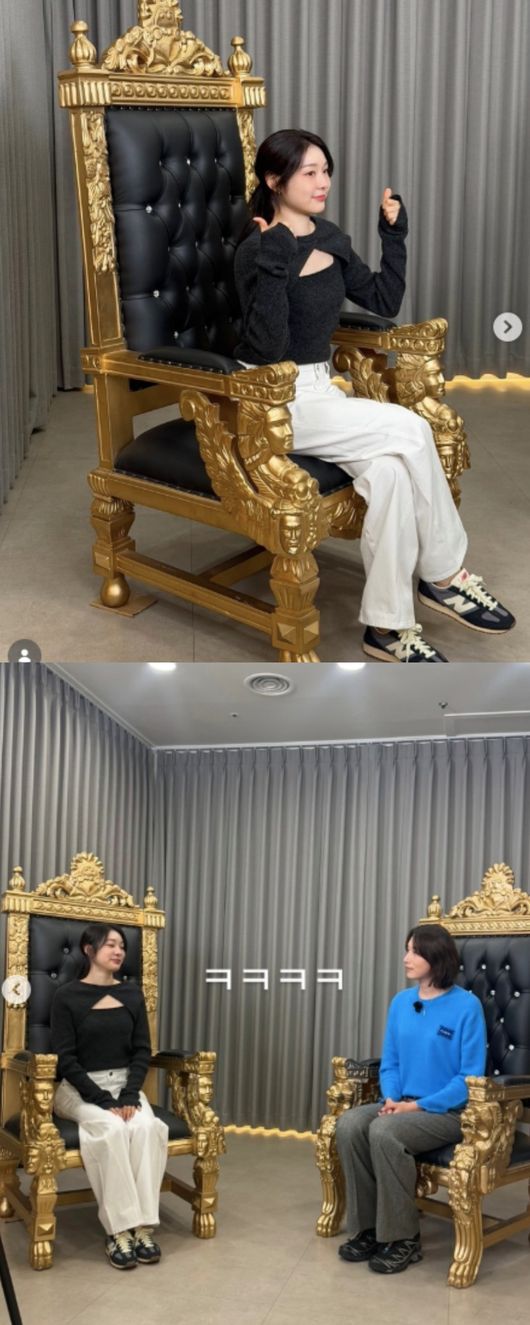 김연아는 전날 공개된 김연경의 유튜브 채널 ‘식빵언니 김연경’의 ‘겉바속톡’ 첫 게스트로 출연한 바. 촬영 당시 사진을 공개한 김연아는 화려한 황금빛 의자에 앉아 포즈를 취하거나 김연경과 나란히 앉아 이야기를 나눈 등 비하인드 컷을 선보였다.
