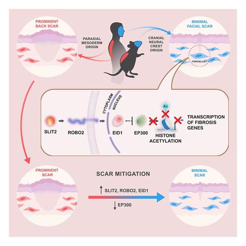 롱에이커 교수는 흉터가 형성되기 위해서는 섬유아세포 DNA가 콜라겐 같은 흉터 조직 형성에 관여하는 유전자에 더 쉽게 접근할 수 있어야 한다며 얼굴 섬유아세포에서는 ROBO2 단백질이 이 과정을 억제하는 것으로 보인다고 설명했다.