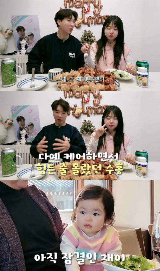 늦은 밤 재이를 재우고 육퇴한 수다부부. 김다예는 "지금 씻지도 못했는데 옷 갈아입고 왔다"라며 고생한 남편을 위로했다.