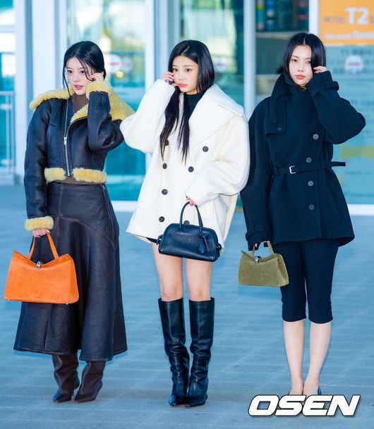 아일릿 민주, 원희, 윤아가 출국길에 오르며 포즈를 취하고 있다. 2026.01.24 / rumi@osen.co.kr