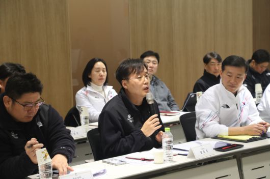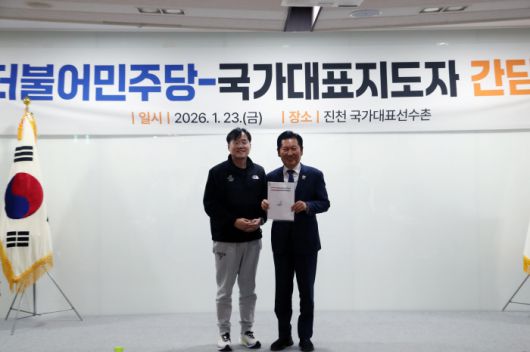 국가대표지도자협의회는 K-스포츠의 해, 밀라노-코르티나올림픽, 아이치-나고야아시안게임 훈련에 매진중인 태극전사들을 응원하기 위해 선수촌을 찾은 더불어민주당 정청래 대표, '우생순 레전드' 임오경 의원(국회 문화체육관광위원회 간사)와 함께 국가대표 지도자 간담회를 개최했다. 여당 지도부와의 첫 공식 간담회, 국가대표 지도자들은 "국회의원 한 명만 현장을 찾아와도 기대를 갖게 되는데, 당 대표 최고위원과 체육 현장을 잘 이해하는 국회의원이 함께한 자리는 매우 이례적"이라며 높은 기대감을 전했다. 뜨거운 참가 열기 속에 간담회 참석자 15명을 선정하는 과정조차 쉽지 않았다. 황희태 유도 국가대표 감독, 김국영 육상 국가대표 코치(대한체육회 선수위원장) 등 지자들이 각 종목과 엘리트 체육을 대표해 또렷한 목소리를 냈다.