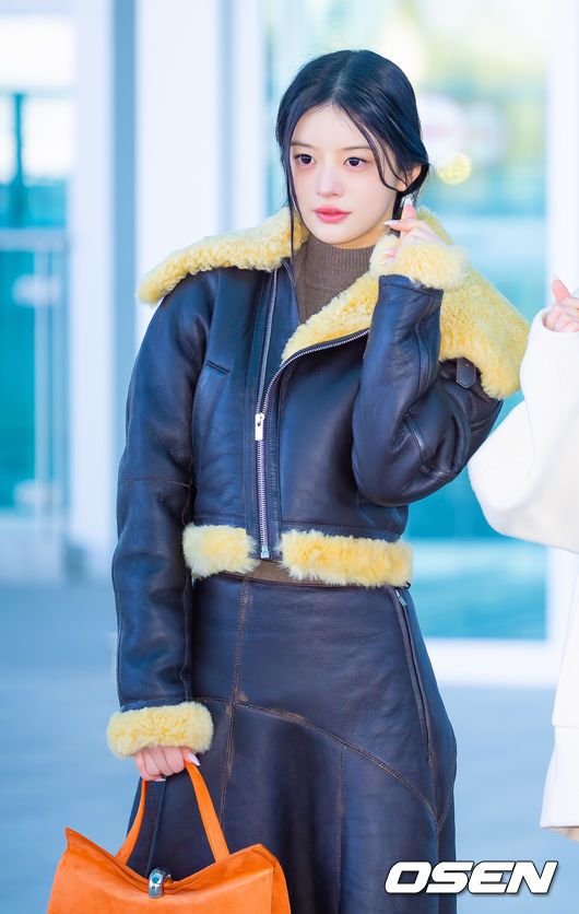 아일릿 민주가 출국길에 오르며 포즈를 취하고 있다. 2026.01.24 / rumi@osen.co.kr