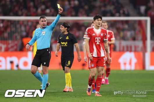 김민재는 지난 22일 독일 뮌헨의 푸스발 아레나 뮌헨에서 열린 UCL 리그 페이즈 7차전에 선발 출전, 경고 누적 퇴장 당했다. 팀은 위니옹 생질루아즈를 2-0으로 꺾고 16강행을 확정했다.