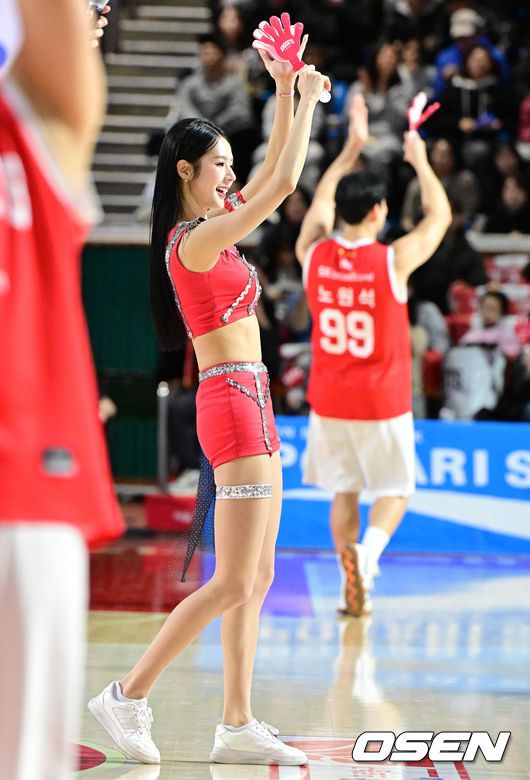[OSEN=잠실학생체, 지형준 기자] 24일 서울 잠실학생체육관에서 2025-2026 LG전자 프로농구 서울 SK와 대구 한국가스공사의 경기가 열렸다. SK는 4위(19승 14패), 한국가스공사는 10위(11승 22패)를 기록중이다. 2쿼터 SK 박기량 치어리더가 응원을 하고 있다. 2026.01.24 /jpnews@osen.co.kr