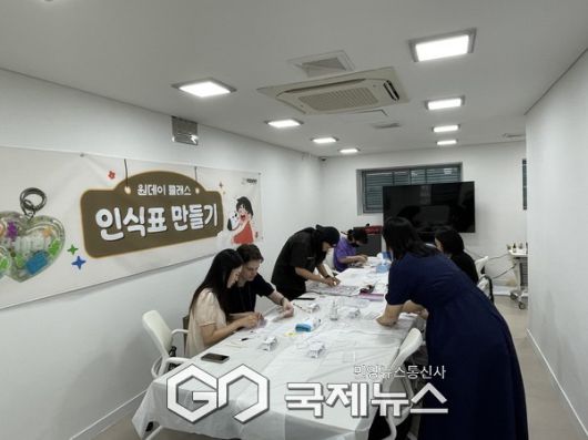 ‘구로댕냥이네 서울시립동물복지지원센터’에서 진행된 반려동물 인식표 만들기 원데이 클래스 참가자들이 체험 활동에 집중하고 있다. [사진제공=구로구청]