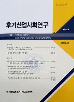『후기산업사회연구』(ISSN: 2799-9971)는 2022년 2월 양준호 소장 취임 이후 창간되어 현대자본주의의 후기산업사회 전환 과정에서 나타나는 지역과 산업, 도시, 기후변화 등 주요 이슈를 중심으로 경제학·사회학·정치학·사회지리학 등 인접 학문 분야를 아우르는 학제 간 연구 성과를 축적해 왔다.