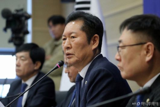 정청래 더불어민주당 대표가 23일 충북 진천선수촌에서 열린 최고위원회의에서 모두발언을 하고 있/사진=뉴스1 /사진=(진천=뉴스1) 김용빈 기자 |