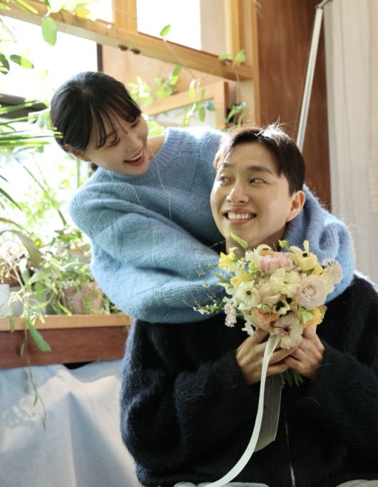 공개된 사진 속 송지은과 박위는 화원에서 데이트를 즐기며 환한 미소를 짓고 있다. 두 사람은 직접 만든 부케를 들고 사진을 찍는 등 소소하지만 다정한 신혼의 분위기를 전했다. 자연스럽게 닮은 웃음과 편안한 표정이 눈길을 끌었다.