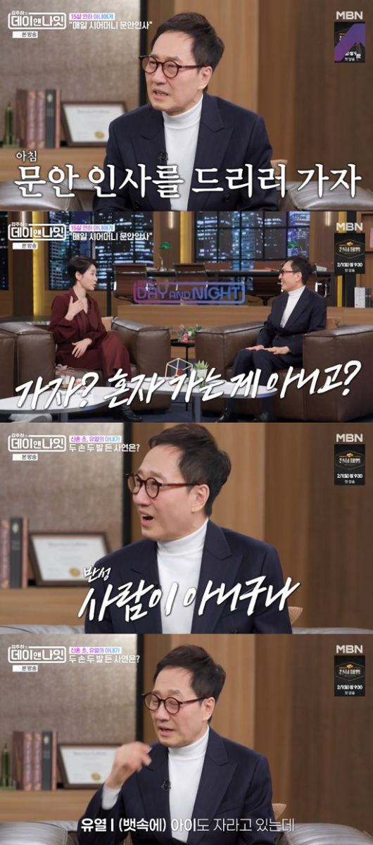 이후 유열은 아내와 결혼 후 매일 어머니 집에서 삼시 세끼를 함께 했다고. 그는 "외아들에 50여 년 만에 장가를 갔다. 어머니 바로 옆집에서 살았다"며 "아침에 문안 인사를 가고 저는 방송을 하러 갔다"고 해 MC들을 놀라게 했다.