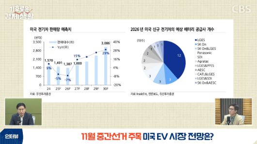 ◇ 한병화> 작년에 한 5% 정도 역성장한 것 같습니다. 9월부터 보조금이 중단되면서 그전까지는 판매가 많이 늘었었는데 4분기에 판매가 확 줄었죠. 왜냐하면 미리 당겨서 사서 그렇습니다. 올해도 저는 한 7% 정도 역성장할 것으로 보고 있어요. 과거 트럼프 1기에서도 2년간 역성장하고 그다음 연도부터는 재 성장세로 올라왔고요. 올해도 저는 7% 역성장이 그렇게 큰 의미가 있다고 보지 않아요. 왜냐하면 올해 신규로 들어오는 모델이, 전기차 모델이 30종이 넘습니다. 현재까지 카운팅 된 게 한 32종 정도 되는데, 작년 연말까지 미국의 전기차 차종이 110종 정도 됐거든요. 그러니까 한 30% 정도 모델은 느는 거예요. 물론 모델들이 하반기에 많이 몰려 있기 때문에 상반기에는 판매가 안 좋을 것 같고요. 하반기에는 다시 리바운딩이 시작될 것 같습니다.