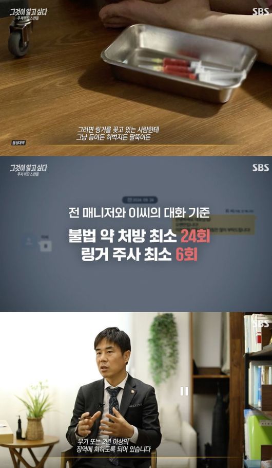 24일 방송된 SBS ‘그것이 알고 싶다’(이하 ‘그알’)에 따르면, 박나래 전 매니저 최 씨는 A씨가 여러 차례 다양한 장소에서 링겔과 주사를 놓는 장면을 직접 목격했다고 주장했다.