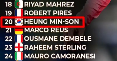 심지어 손흥민보다 두 계단 아래인 20위에 프랑스 윙어 우스만 뎀벨레(PSG)를 놓아 눈길을 끌었다.