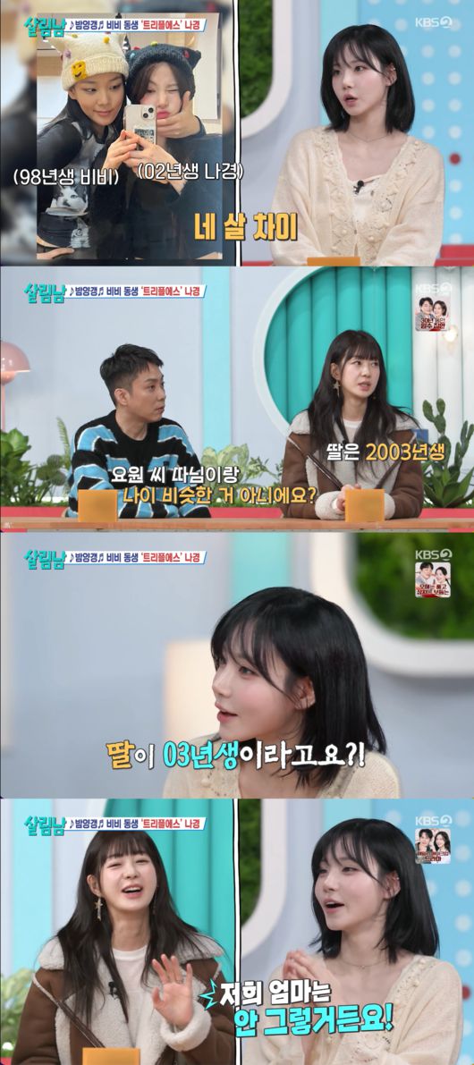 나경은 본인을 02년생이라고 소개하며 언니 비비와는 4살 차이가 난다고 밝혔다. 나경의 나이를 들은 은지원은 옆에 있던 이요원을 향해 “요원 씨 따님이랑 나이 비슷한 거 아니에요?”라고 물었고, 이에 이요원은 무덤덤하게 “네. 걔는 03년생”이라고 답해 모두를 깜짝 놀라게 했다. 02년생인 나경과 이요원의 첫째 딸이 불과 한 살 차이밖에 나지 않는 ‘또래’였던 것.