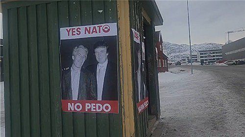 이날 누크 시내 중심가 버스 정류장에는 미국의 미성년자 성착취범인 제프리 엡스타인과 젊은 시절 트럼프 대통령이 함께 찍은 사진과 함께 '나토 예스, 페도(pedo·소아성애자) 노'라는 문구가 적힌 포스터가 붙어 트럼프 대통령을 향한 현지 주민의 반감을 짐작케 했다.