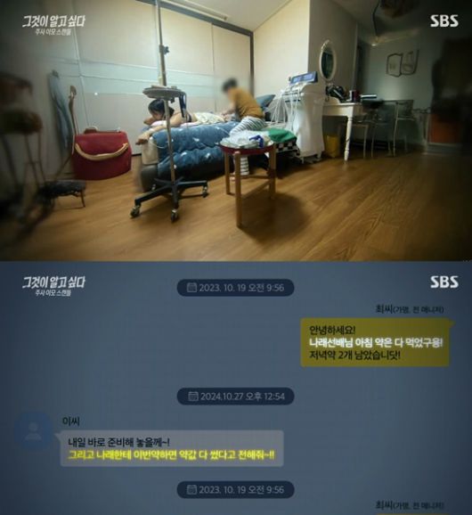 주사이모로 불리는 A씨가 SBS 그것이 알고싶다 취재 때문에 자살을 시도했었다며 공개한 사진. /사진=SNS 갈무리 |