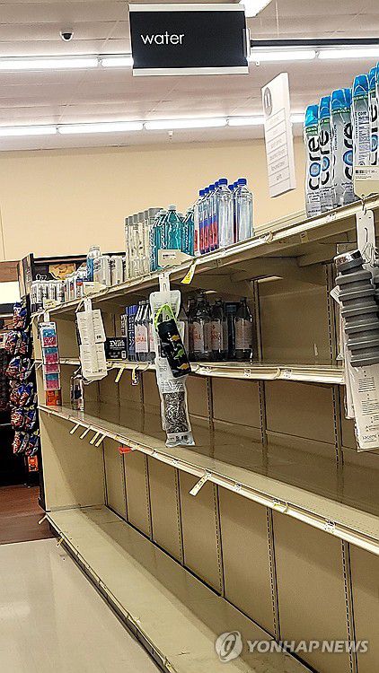 (워싱턴=연합뉴스) 조준형 특파원 = 미국과 캐나다를 포함한 북미 지역에 사상 최악의 한파를 동반한 눈 폭풍이 24일(현지시간) 엄습할 것으로 예보된 가운데 이날 오전 미국 버지니아주 맥클린의 한 대형 식료품점 생수 매대가 거의 비어있다. 2026.1.25