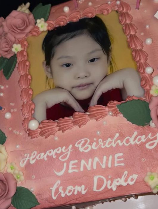 특히 지난 16일 만 30세 생일을 맞이한 제니의 케이크 사진도 공개됐다. 케이크 중간에 제니의 어린 시절 사진이 들어가 있어 눈길을 끈다.