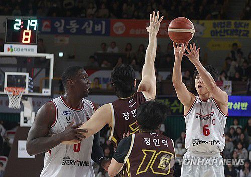 (창원=연합뉴스) 김동민 기자 = 25일 경남 창원체육관에서 열린 2025-2026 LG전자 프로농구 정규리그 창원 LG 세이커스와 안양 정관장 레드부스터스의 경기. 정관장 박지훈이 슛하고 있다. 2026.1.25