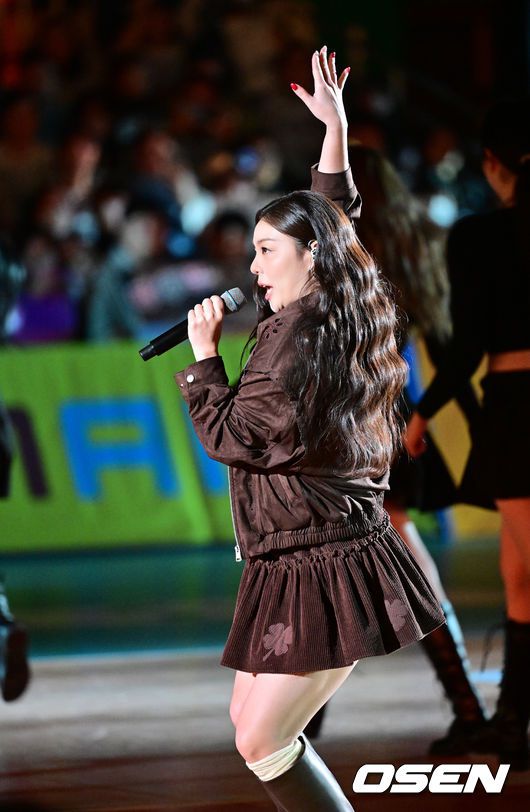 [OSEN=춘천, 지형준 기자] 25일 강원도 춘천 호반체육관에서 진에어 2025-2026 V-리그 올스타전이 열렸다. 이번 올스타전의 컨셉은 ‘올스타 빌리지 인 춘천’으로 별들과 함께 추억이 가득 채워지는 올스타 마을이라는 의미를 담고 있는데, 팬들을 위한 다채로운 현장 이벤트를 선보였다. 가수 에일리가 축하무대를 선보이고 있다. 2026.01.25 /jpnews@osen.co.kr