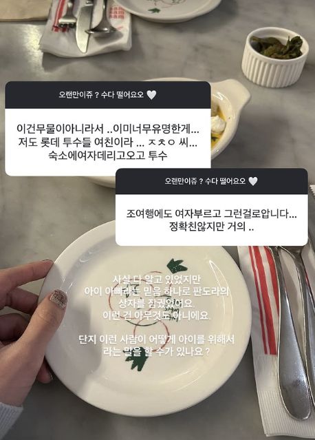 또한 누리꾼들은 김지연에게 "저도 롯데 투수들 여친이라. ㅈㅊㅇ 씨 숙소에 여자 데리고 오고", "조여행에도 여자 부르고 그런 걸로 안다"고 제보하기도. 그러자 김지연은 "사실 다 알고 있었지만 아이 아빠라는 믿음 하나로 판도라의 상자를 잠궜다. 이런 건 아무것도 아니다. 단지 이런 사람이 어떻게 아이를 위해서라는 말을 할 수가 있냐"고 답변해 이목을 집중시켰다.