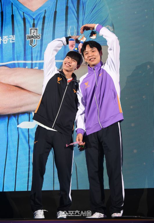 박경민, 정민수가 25일 춘천 호반체육관에서 열린 2025-2026 V-리그 올스타전에 입장하고 있다.2026. 1. 25.춘천 | 최승섭기자 thunder@sportsseoul.com [기사제보 news@sportsseoul.com] Copyright ⓒ 스포츠서울&sportsseoul.com
