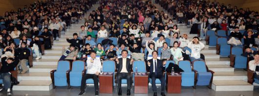 [서울=뉴시스] 오승록 노원구청장이 25일 오후 서울 노원구 삼육대학교 요한관 대강당에서 열린 ‘겨울방학 노원 어린이 원어민 영어캠프’ 퇴소식에서 기념촬영을 하고 있다. (사진=노원구청 제공) 2026.01.25. photo@newsis.com