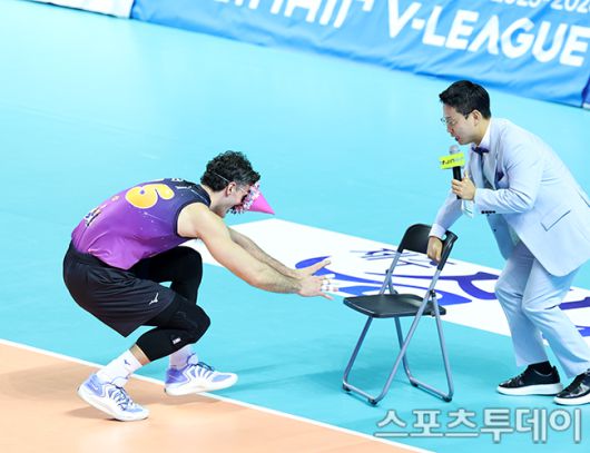 [춘천(강원)=스포츠투데이 권광일 기자] 2025-2026 진에어 V-리그 올스타전 K스타와 V스타의 경기가 25일 강원 춘천시 호반체육관에서 열렸다. V스타 러셀이 올스타전에서 게임을 하고 있다. 2026.01.25. [스포츠투데이 권광일 기자 sports@stoo.com]